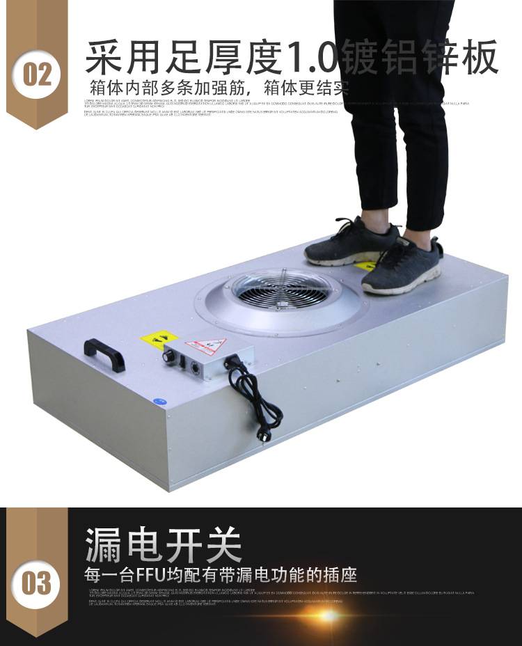 FFU風(fēng)機過濾機組控制采用其公司開發(fā)之非接觸感應(yīng)式三檔調(diào)速,電路均采用電器開關(guān)控制,控制安全平穩(wěn)。彈性、多元化配置除標準機型外,可根據(jù)客戶需求,制作不同規(guī)格的非標產(chǎn)品。如:風(fēng)管連接法蘭、濾網(wǎng)、箱體材質(zhì)等變更。人性化設(shè)計機組附裝不銹鋼把手,使搬運及安裝更為方便快捷。