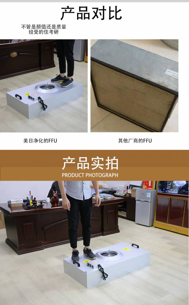FFU風機過濾機組控制采用其公司開發(fā)之非接觸感應式三檔調(diào)速,電路均采用電器開關控制,控制安全平穩(wěn)。彈性、多元化配置除標準機型外,可根據(jù)客戶需求,制作不同規(guī)格的非標產(chǎn)品。如:風管連接法蘭、濾網(wǎng)、箱體材質等變更。人性化設計機組附裝不銹鋼把手,使搬運及安裝更為方便快捷。