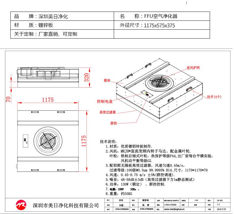 FFU風機過濾機組控制采用其公司開發(fā)之非接觸感應(yīng)式三檔調(diào)速,電路均采用電器開關(guān)控制,控制安全平穩(wěn)。彈性、多元化配置除標準機型外,可根據(jù)客戶需求,制作不同規(guī)格的非標產(chǎn)品。如:風管連接法蘭、濾網(wǎng)、箱體材質(zhì)等變更。人性化設(shè)計機組附裝不銹鋼把手,使搬運及安裝更為方便快捷。