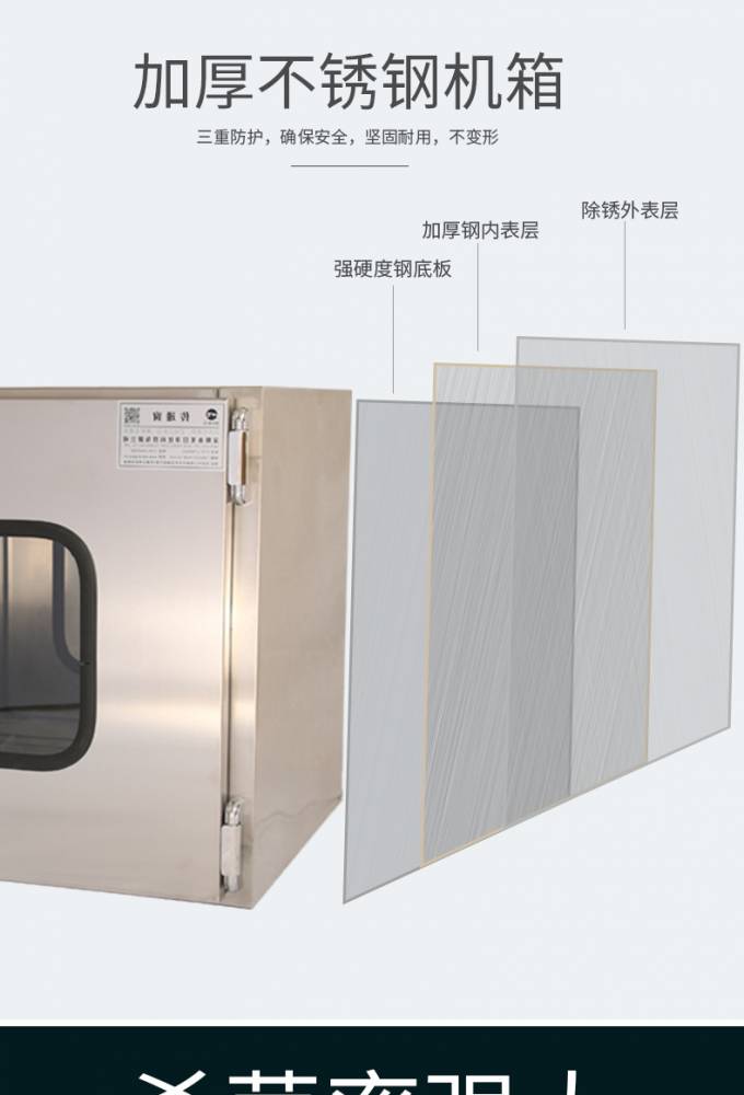 ⒈短距離傳遞窗工作臺面采用不銹鋼板,平整光潔耐磨