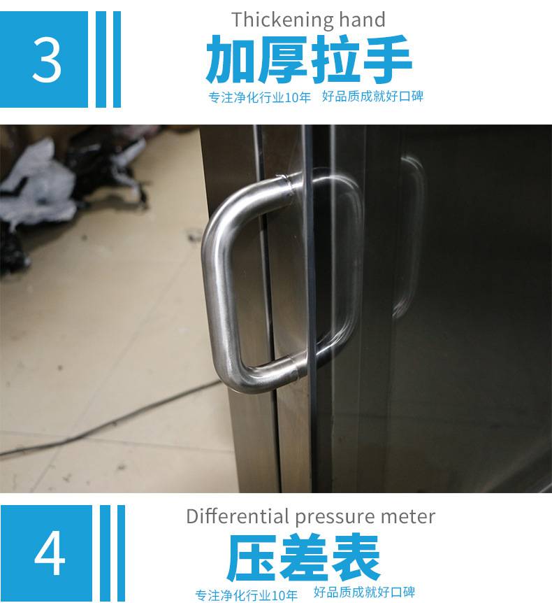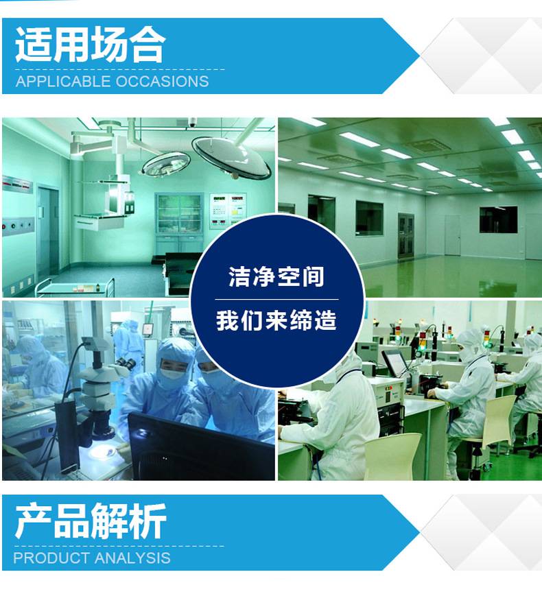 ⒍采用有隔板高效過濾器,過濾效率為:99.99%,確保凈化級別。