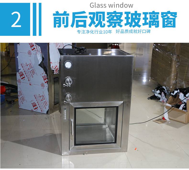 ⒈短距離傳遞窗工作臺面采用不銹鋼板,平整光潔耐磨