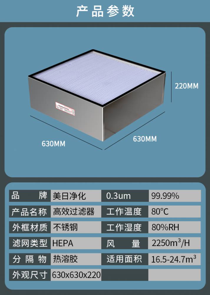6、過濾效率:99.99%@0.3um