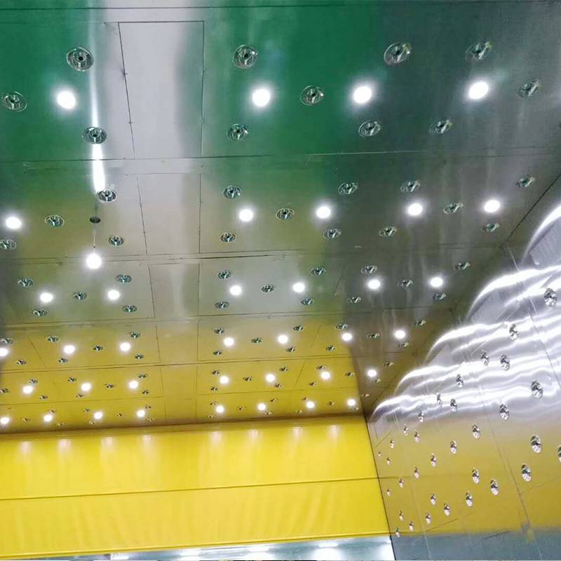 內(nèi)、外箱體可選用1.0mm冷扎鋼板靜電噴涂或全不銹鋼制造;風(fēng)淋室內(nèi)底板配全不銹鋼板。