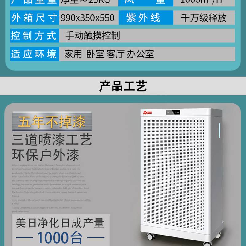 每日凈化空氣凈化器,紫外線快速殺菌、快速除甲醛、PM2.5、過濾煙塵、殺滅細(xì)菌和病毒、清除異味、降解有毒化學(xué)氣體、凈化清新空氣、呵護(hù)人體健康等;多檔風(fēng)速、多向氣流、及低噪音等。