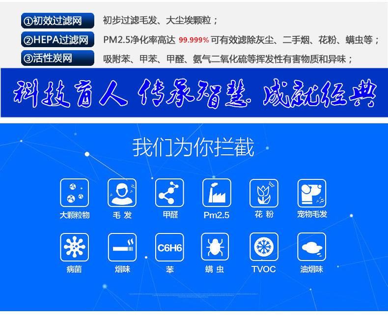 凈化器運行時,機器內(nèi)的通風機使室內(nèi)、車內(nèi)空氣循環(huán)流動,污染的空氣通過機內(nèi)的空氣過濾器過濾后,將各種污染物清除或吸附,然后通過裝在出風口的負離子發(fā)生器將空氣不斷電離,產(chǎn)生大量負離子,被微風扇送出,形成負離子流,達到清潔、凈化空氣的目的。