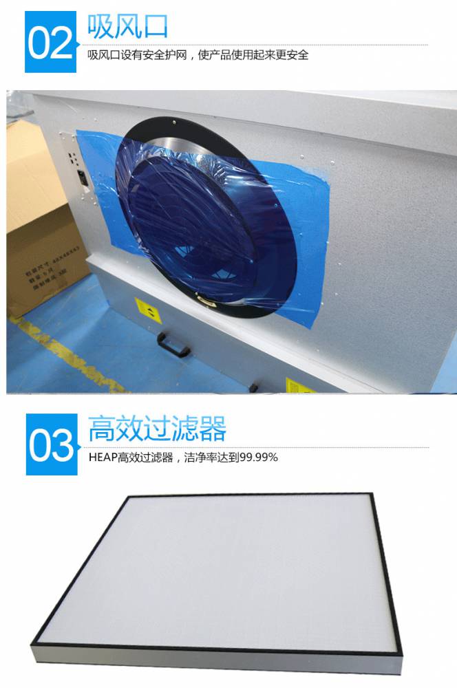 FFU風機過濾機組控制采用其公司開發(fā)之非接觸感應(yīng)式三檔調(diào)速,電路均采用電器開關(guān)控制,控制安全平穩(wěn)。彈性、多元化配置除標準機型外,可根據(jù)客戶需求,制作不同規(guī)格的非標產(chǎn)品。如:風管連接法蘭、濾網(wǎng)、箱體材質(zhì)等變更。人性化設(shè)計機組附裝不銹鋼把手,使搬運及安裝更為方便快捷。